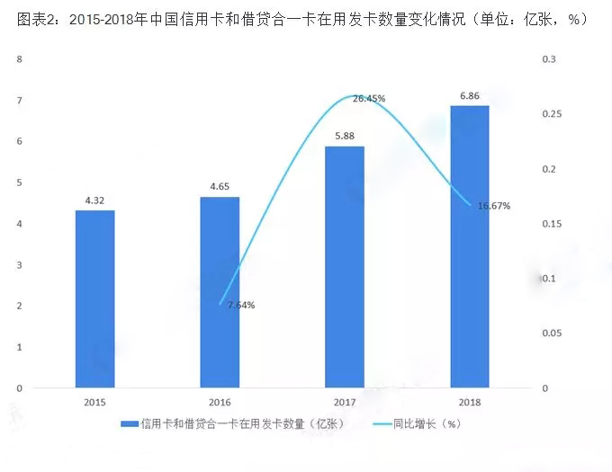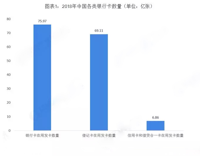根据中国人民银行发布的2018年支付体系运行状况报告显示,我国银行卡发卡量稳步增长。截至2018年末,全国银行卡在用发卡数量75.97亿张,同比增长13.51%。其中,借记卡在用发卡数量69.11亿张,同比增长13.20%;信用卡和借贷合一卡在用发卡数量共计6.86亿张,同比增长16.73%。借记卡在用发卡数量占银行卡在用发卡数量的90.97%,较上年末有所下降。全国人均持有银行卡5.46张,同比增长12.91%。其中,人均持有信用卡和借贷合一卡0.49张,同比增长16.11%。